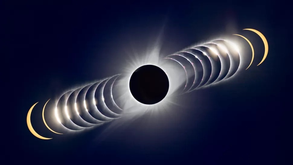 Это событие связано с полным затмением, при котором Луна полностью закрывает диск Солнца. Во время полного затмения нам открывается редкий вид на перламутровую корону Солнца, что является событием "из списка лучших". В то же время на ландшафт опускается темнота, позволяющая увидеть некоторые более яркие звезды и планеты. Тем временем на горизонте появляется жутковатое шафрановое свечение.