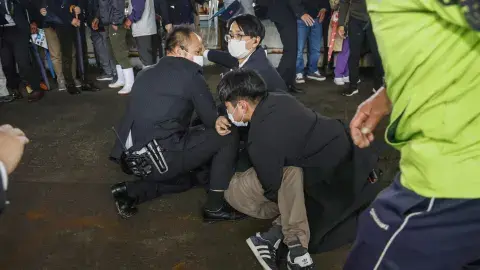 Премьер-министр Японии Фумио Кисида был эвакуирован в субботу из места, где он выступал с речью на открытом воздухе, после “звука, похожего на взрыв” на месте происшествия. На видеозаписи, опубликованной японской общественной телекомпанией NHK, видно, как представители общественности убегают, а мужчина арестован после инцидента. На кадрах видно, как несколько мужчин, предположительно сотрудников полиции, удерживают подозреваемого на земле. Местное информационное агентство Kyodo news сообщило, что мужчина бросил “нечто, похожее на дымовую шашку”. Драматические сцены происходили в городе Вакаяма, где Кисида выступал с речью после осмотра рыбацкого порта Сайказаки. Речь была частью поддержки премьер-министром предстоящих дополнительных выборов в Палату представителей в округе Вакаяма. В настоящее время ведется предвыборная кампания на общенациональных местных выборах в Японии.