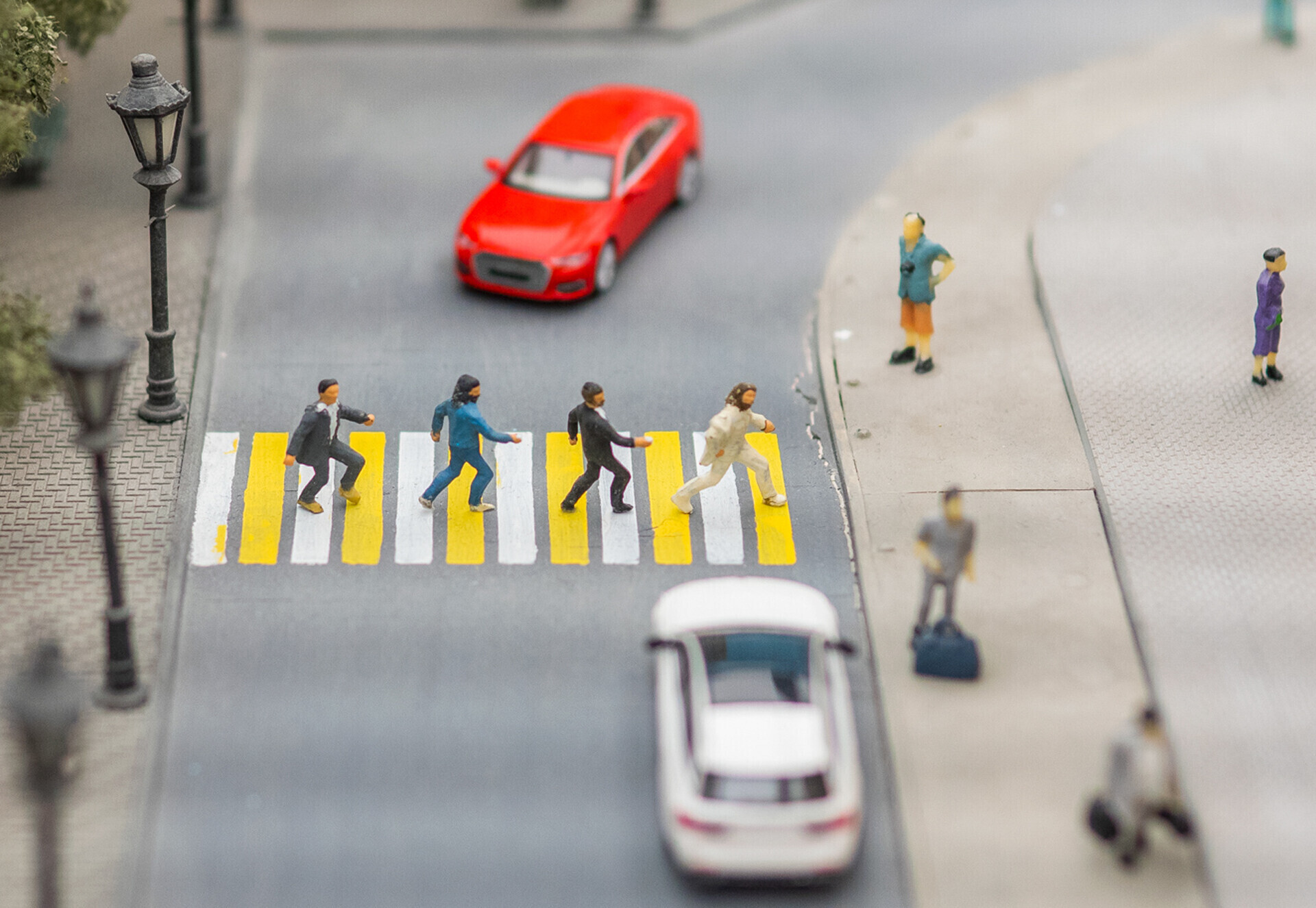 В Санкт-Петербурге четверо музыкантов из The Beatles переходят дорогу в знакомом стиле.