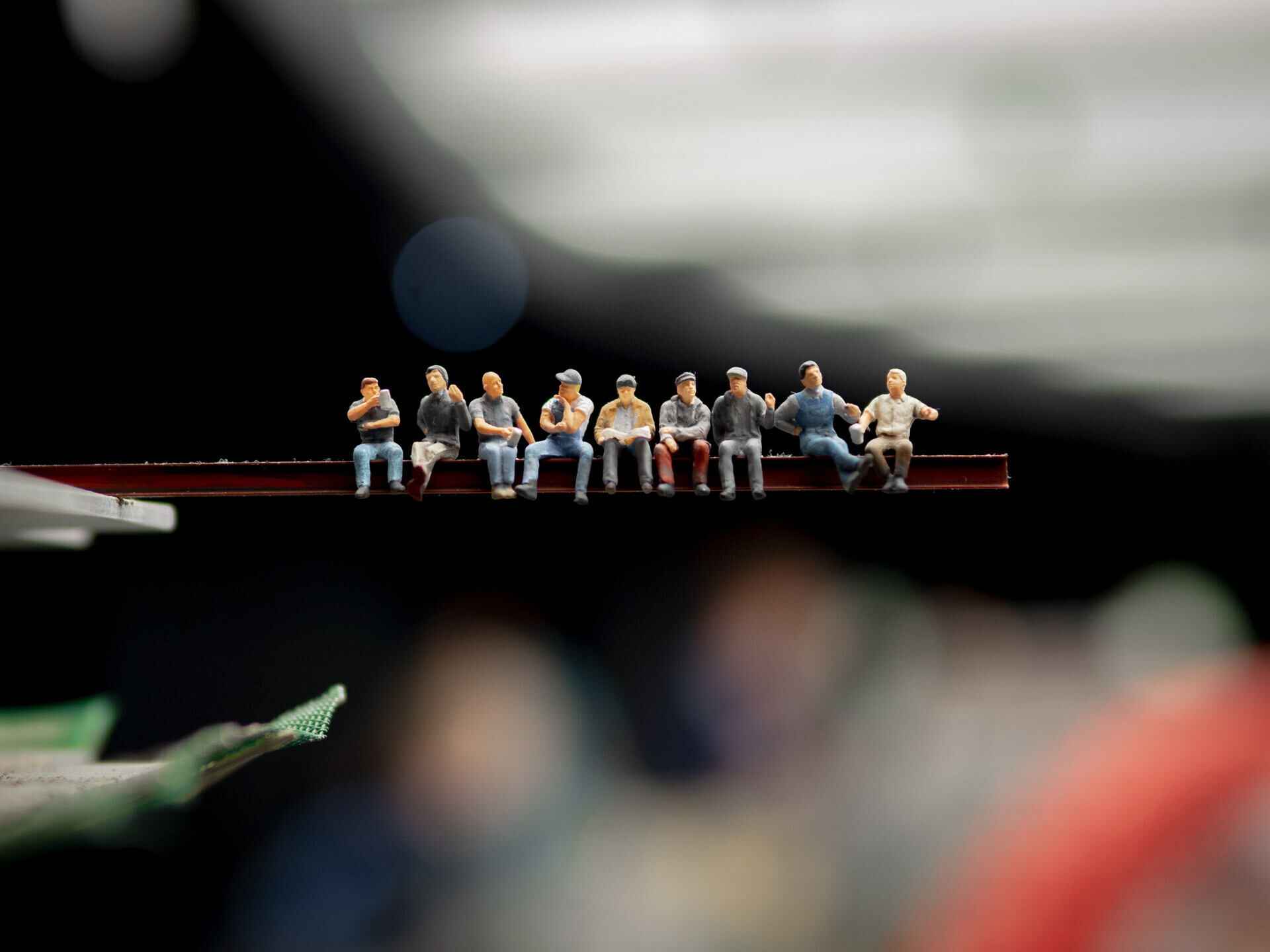 В спальном районе Москвы вы можете увидеть точную копию знаменитой фотографии ‘Обед на вершине небоскреба’.