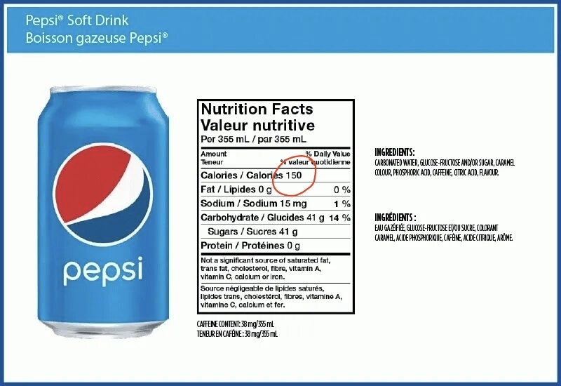 Правда, этих килокалорий можно набрать из "вредных" продуктов. Например, в баночке пепси все 150 ккал!