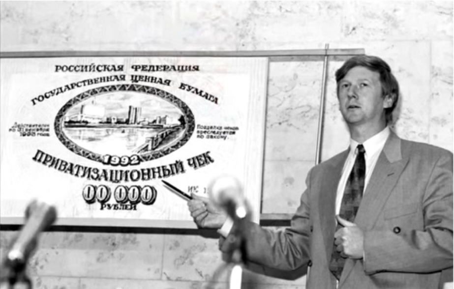 А Чубайс выпустил брошюр,, Приватизация в кармане,, в которой четко написано, куда мы должны были принести свои ваучеры. Но не Чубайсу же за каждым из нас бегать
