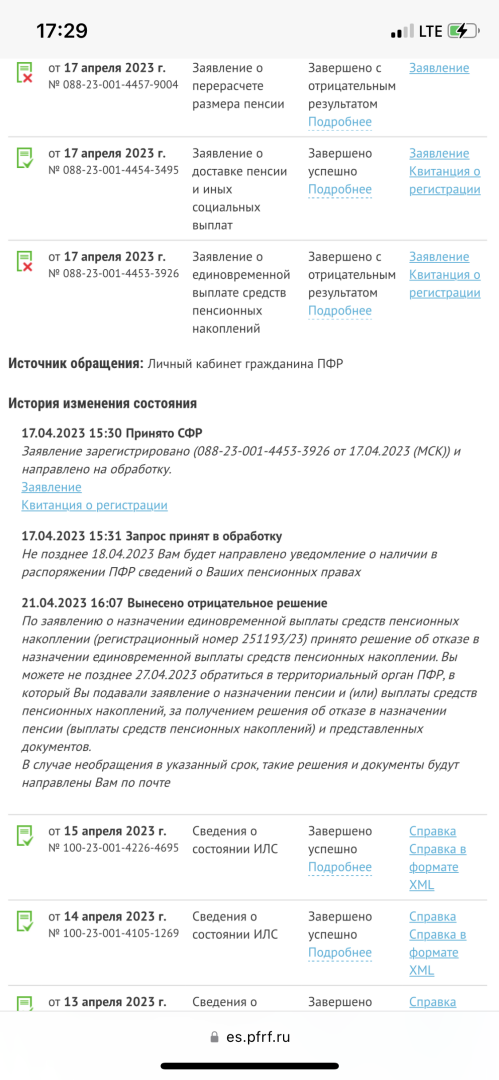 Добрый день! Моей маме 57 лет, есть сумма пенсионного капитала. Было подано заявление через личный кабинет СФР о назначении единовременной выплаты пенсионных накоплений. Сумма составляет около 250,000 рублей. Сегодня заявлению присвоился статус «рассмотрено, принято отрицательное решение». На горячей линии СФР мы не получили никакого ответа. Теоретически я понимаю-отрицательное решение принято потому что накопительная часть составляет более 5 процентов от суммы пенсии и в такой ситуации мама будет получать ежемесячную доплату на период дожития. Знающие люди-проясните пожалуйста ситуацию-нужно ли еще какое-то заявление подавать или этого достаточно?