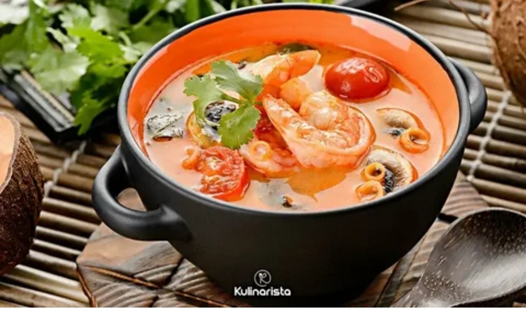 Невозможно приехать в Таиланд и не попробовать этот суп. Это кисло-острый суп на основе куриного бульона с морепродуктами и лемонграссом. Название супа состоит из двух слов – том и ям, что буквально переводится как “варить” и “острая смесь”.