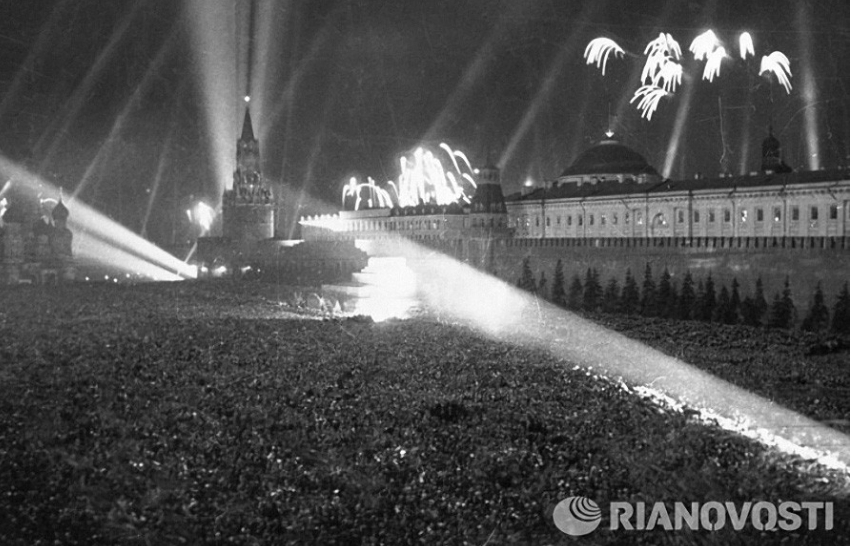 """" После того как войска прошли по Красной площади, состоялась церемония возложения венков к могиле Неизвестного солдата у Кремлевской стены."""""В 1945 ее, Могилы Неизвестного солдата, не было. Ее открыл 9 мая 1965 года Брежнев