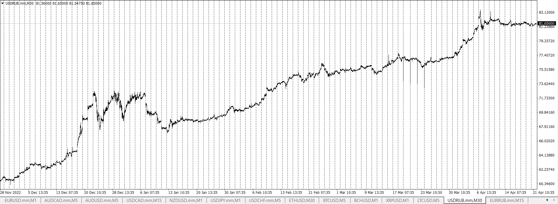 В настоящий момент usd/rub торгуется на уровне 81.650.