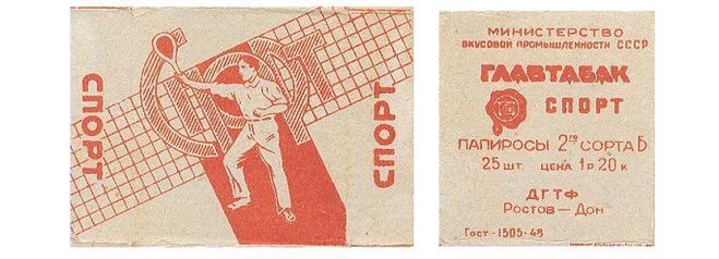 Как ни странно, но с помощью курева родная советская власть ухитрялась еще и пропагандировать здоровый образ жизни: выпускались сигареты и папиросы "Спорт".