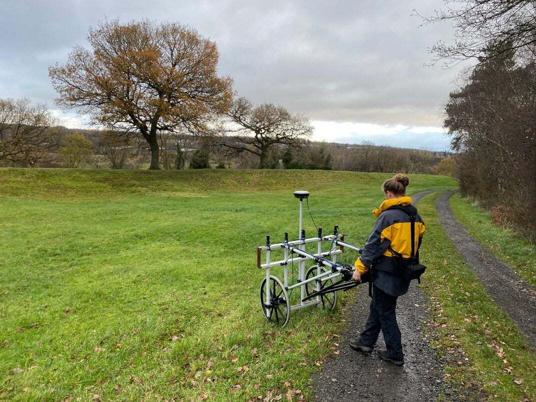 Чтобы найти крепость, которая не видна над землей, археологи использовали градиентометрию, метод геофизических исследований, который использует небольшие изменения магнитного поля Земли для поиска объектов, погребенных под землей без раскопок. С помощью этого метода они определили местонахождение каменного основания сооружения, на котором должен был быть уложен дерн, чтобы создать крепостной вал высотой более шести футов.