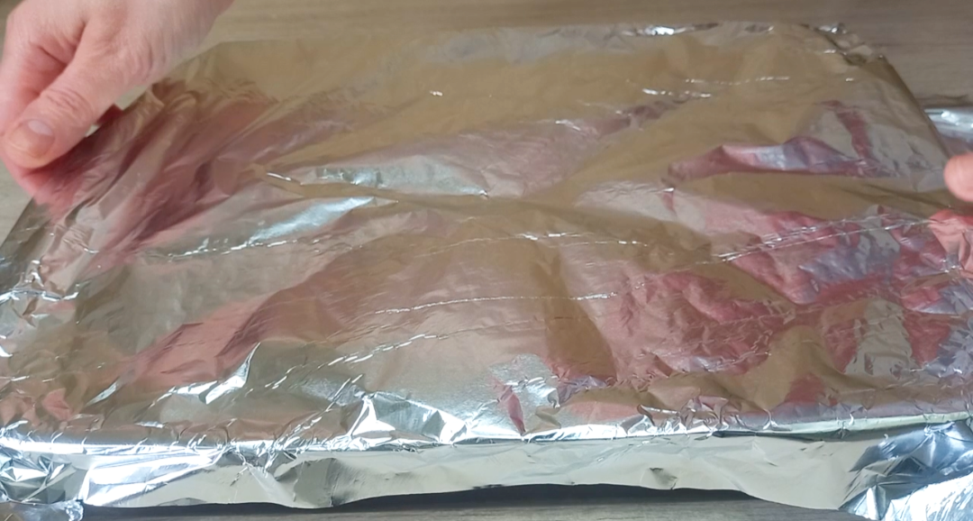 Теперь все это сверху сбрызнем оливковым маслом. Прикрываем форму фольгой и отправляем в хорошо разогретую духовку.