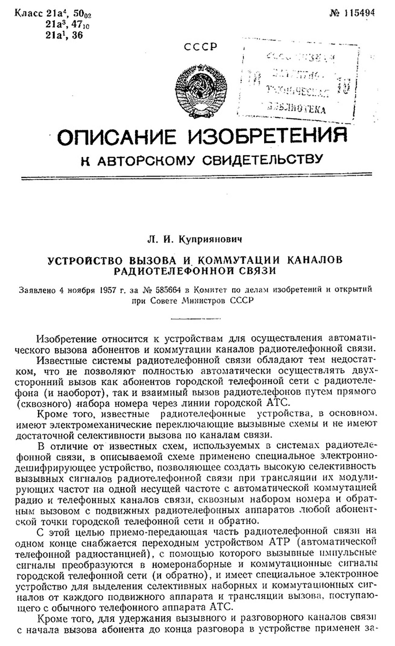 “Что это? Сказочная история? Глава из научно-фантастического романа? Ничего подобного. Автомобильный телефон, с помощью которого вы можете поговорить с любым абонентом в дороге, действительно существует. Он был спроектирован и собран молодым московским инженером Л. Куприяновичем”, – так журнал "За рулем" описал эту историю в статье под названием "По телефону из автомобиля" в 1957 году.