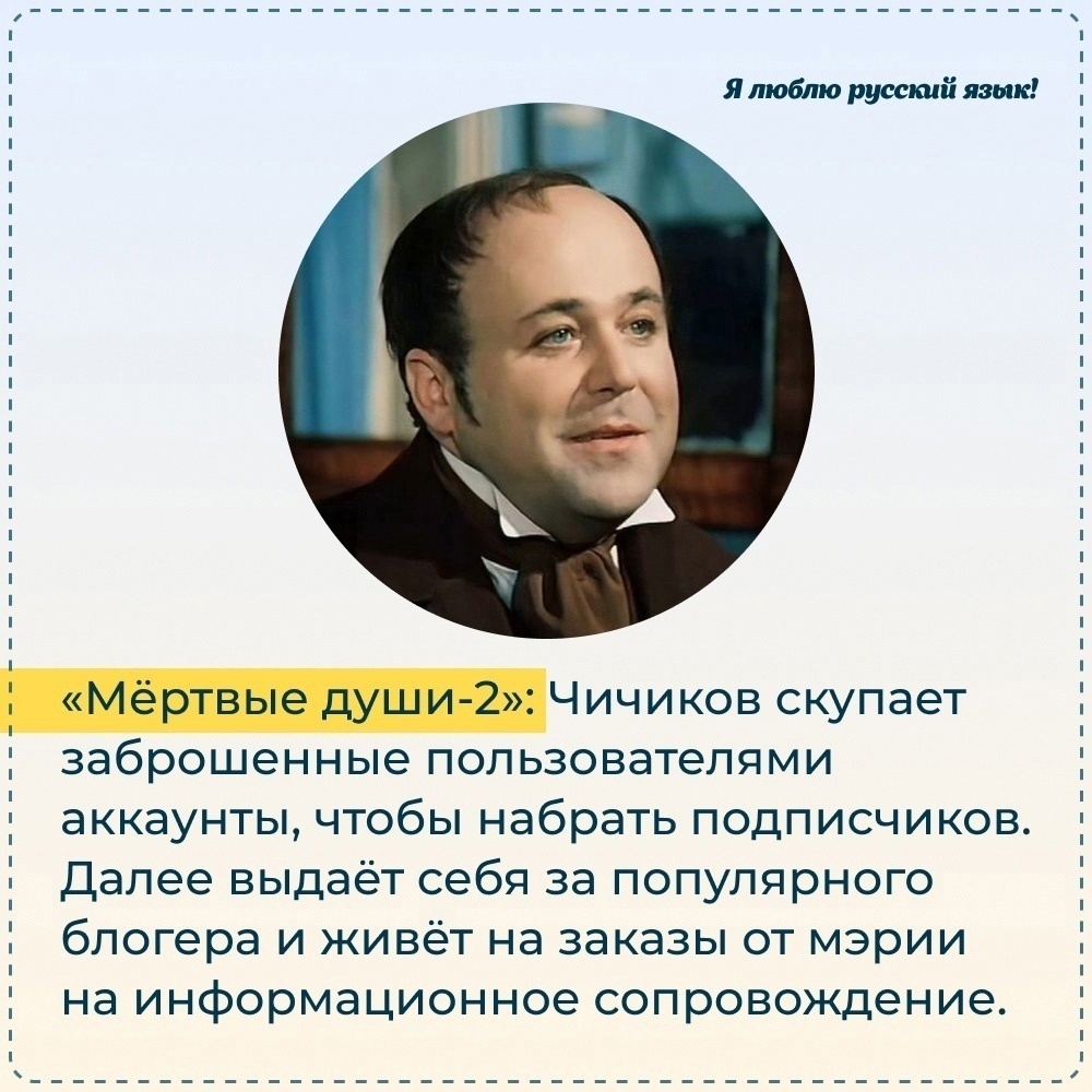 Подкину вам совсем свежую идею, совсем свежий сюжет. Я прямо чувствую себя А С Пушкиным, который подарил Гоголю идею "Мертвые души".