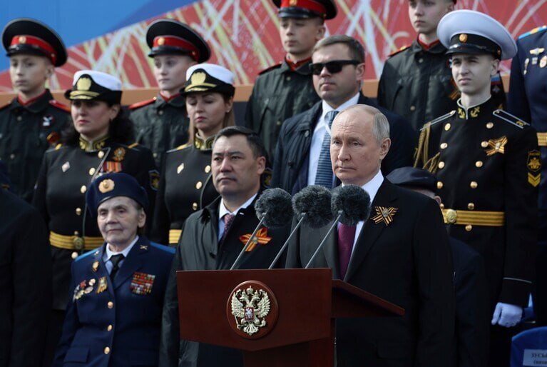 Сегодня из иностранных лидеров должен был приехать только президент Кыргызстана Садир Джапаров, у которого и так была назначена дипломатическая поездка. Но Путин внезапно собрал всех друзей, которых мог: ещё и лидеров Армении, Узбекистана, Казахстана, Туркменистана и Таджикистана. Ну и Лукашенко, куда без него. Некоторые аналитики, даже прокремлёвские, предполагают, что это такой метод защиты тела Путина. Мол, не будут же украинцы рисковать убить лидеров непричастных стран.