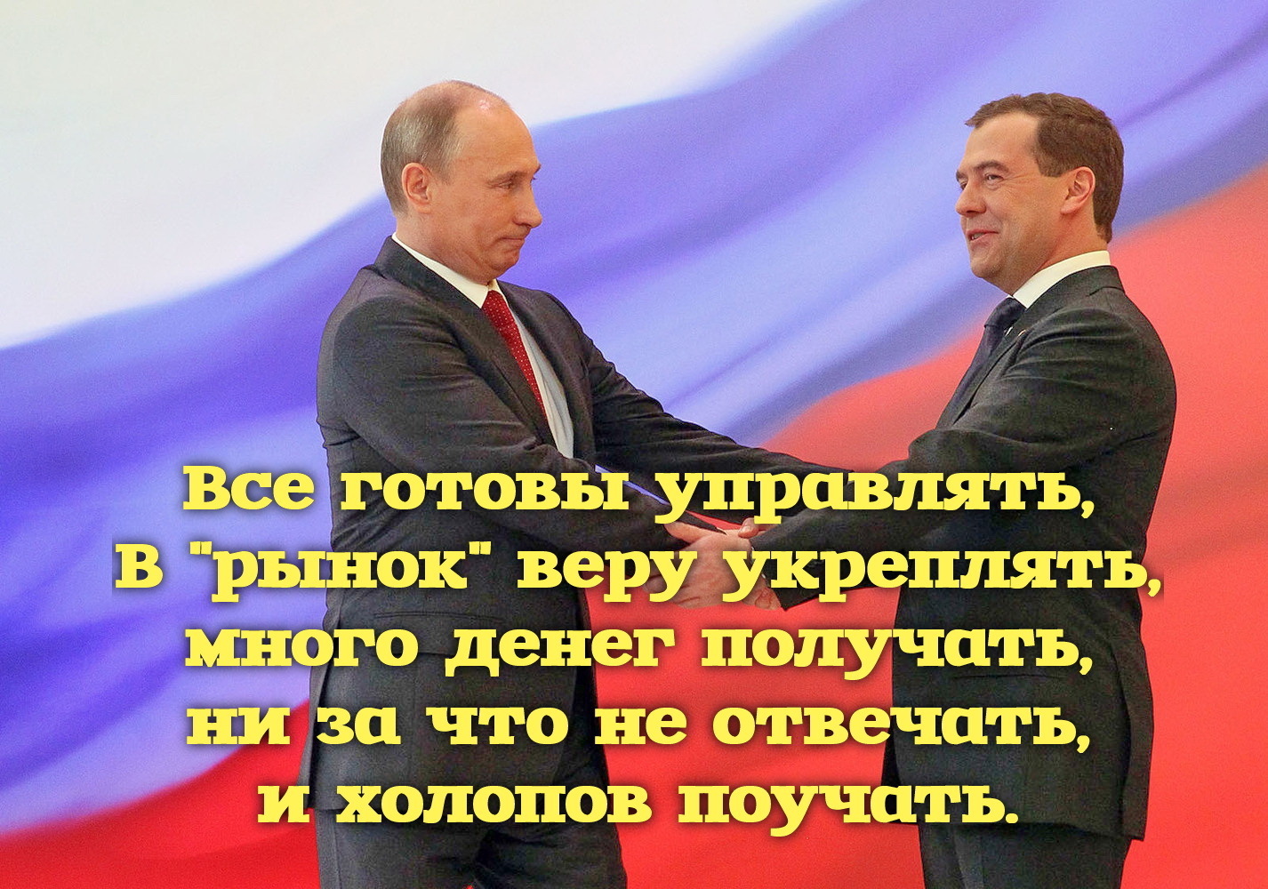 Вместо того, чтобы наводить порядок в стране, президент, с улыбкой на лице, из телевизора, говорит, что в России воровали, воруют и будут воровать. Воруют, именно те, кто находится у кормушки. Воруют миллиардами, и хоть бы что. Даже серьёзных законов нет для них. Пример : Е. Васильева жена А Сердюкова, которая по заявлениям украла миллиарды рублей из бюджета государства. Таких васильевых в нашей стране хренова туча. Кто где может, там и ворует. У нас такой добрый президент, всем дает жить хорошо.
