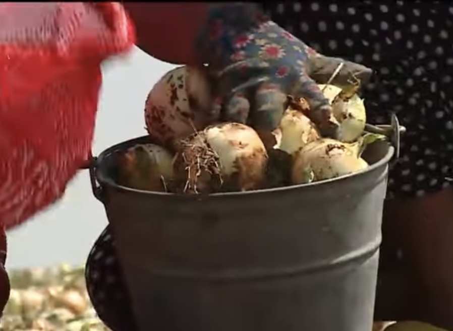 Долгожданный момент - это сбор урожая. Готовность овоща определяется по пожелтевшим листьям, а шелуха по цвету становиться насыщенной и яркой. Сбор лука производится в солнечную и сухую погоду.