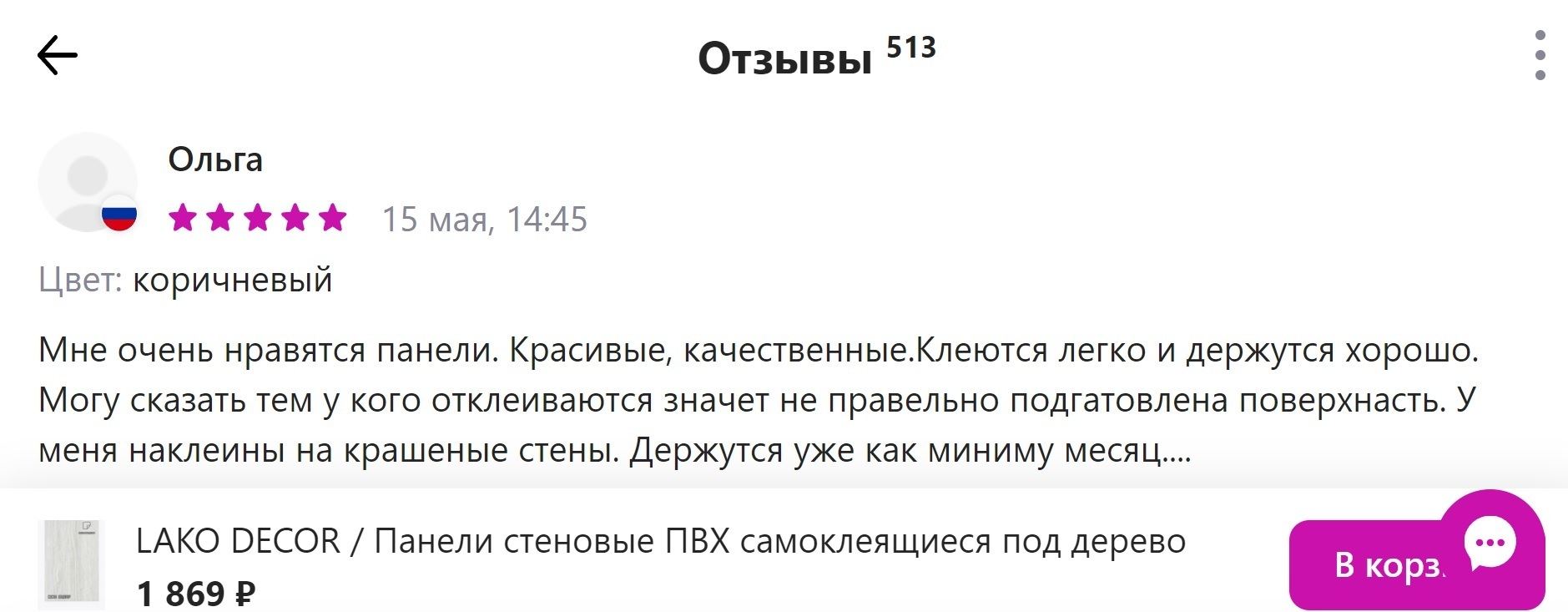 Кстати, по теме "зачем писать грамотно". Совсем недавно наткнулся вот на такой отзыв о самоклеящихся панелях. Вы, наверное, тоже посчитаете, что написано всё нормально, ведь главное, что понятно.