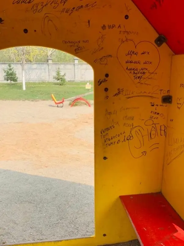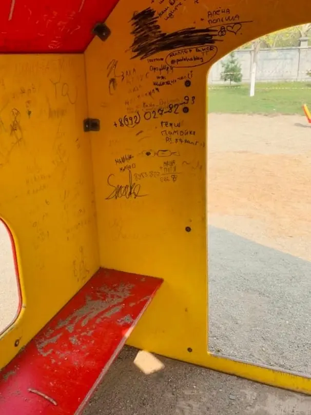 Однако, радость сотрудников невьянского музея была недолгой: очень быстро на свежевыкрашенных стенах домика, где так любят играть малыши, появились надписи различного толка. Сидение качелей, которые, кстати, предназначены для детей до 7 лет, оторвано с болтов. В минувшие праздники на горке недосчитались пяти плашек, которые просто вырваны с креплений и унесены (читай – похищены). Пружины и крепления вертолетика и машинки (игровые формы, предназначенные для детей до 5 лет) оказались расшатаны и сломаны под весом явно более взрослых посетителей.