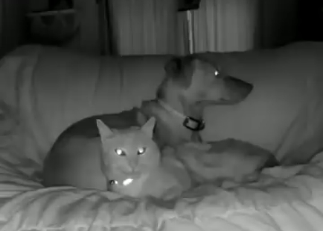 На самом деле, если бы хозяева не установили камеры слежения, они бы и подумать не могли, что в их доме зародилась самая крепкая и сильная дружба, между совершенно разными питомцами такими, как кот и собака.