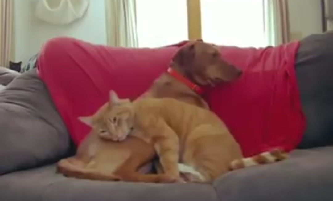 Посмотрите это фантастическое видео и откройте для себя прекрасную дружбу между собакой и кошкой.