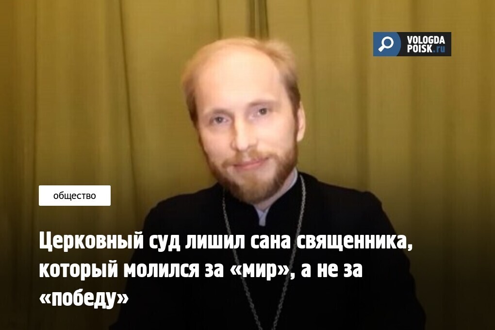 В Москве 11 мая состоялся церковный суд над иереем Иоанном Ковалем, клириком храма Андрея Первозванного в московском районе Люблино. Священник заменил слово «победа» на слово «мир» в молитве «О Святой Руси», которую Патриарх благословил читать во всех православных храмах. Суд лишил священника сана.