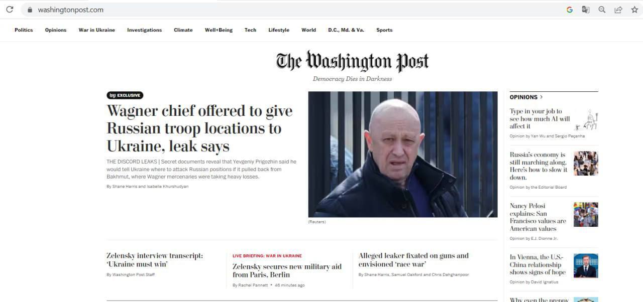 Глава Вагнера предложил передать Украине места дислокации российских войск, говорится в утечке" «Евгений Пригожин заявил, что сообщит ВСУ где атаковать Российские войска, если они отведут свои силы из Бахмута…»