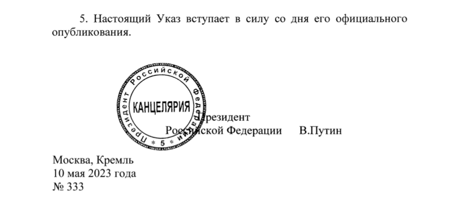 Указ В. Путина, призывающий принять меры для снижения оттока граждан России за границу