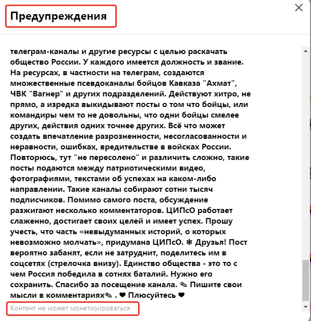 Статьи о событиях в зоне СВО, о плохом Бандере и Шухевиче, о переименовании улиц бандеровскими именами и сносе памятников, об агрессии Запада и настоящих причинах проведения СВО автоматически попадают под санкции "Дзен" и не оплачиваются. При этом публикации иноагентов, активистов внесистемной оппозиции и других личностей с низкой социальной ответственностью набирают тысячи лайков и санкции на них не налагаются.