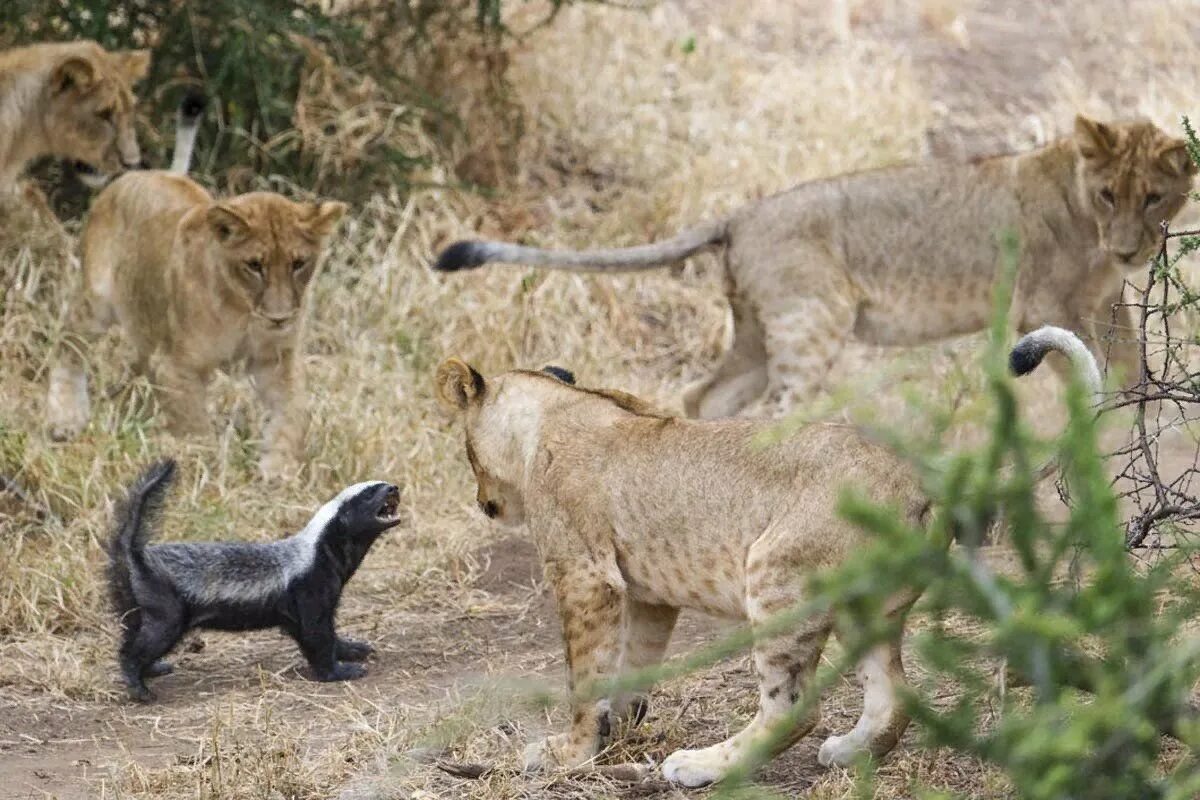 Несмотря на свои небольшие размеры, медоеды славятся своим бесстрашием и агрессией. Известно, что они сражаются с гораздо более крупными хищниками, такими как львы и гиены, и часто выходят победителями благодаря своим мощным челюстям и жесткой коже. Они также являются опытными альпинистами и могут легко взбираться на деревья, что позволяет им избежать опасности или получить доступ к источникам пищи.