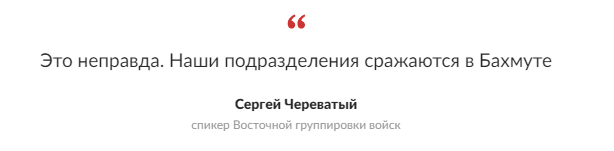 Спикер Восточной группировки войск Сергей Чреватый заявил агентству Reuters, что боевые действия в Артемовске продолжаются. Он подчеркнул, что город остается эпицентром боев.