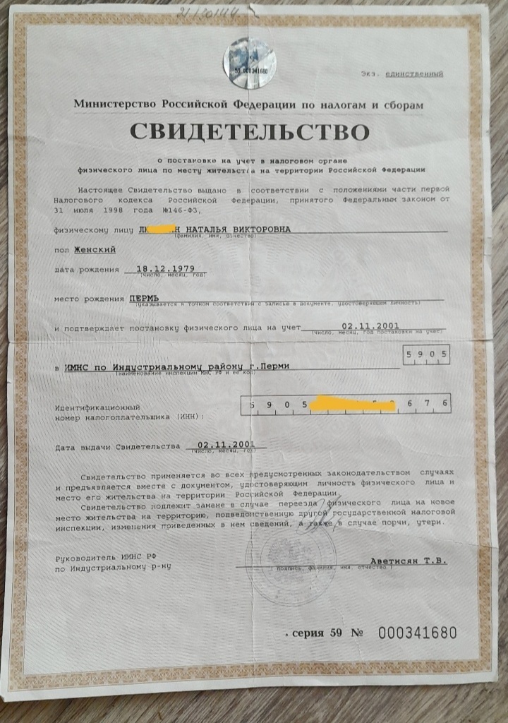 Согласна с вами на 100%. Бланк свидетельства о постановке на учёт физ.лиц в налоговую является документом строгого учета, имеет определённые степени защиты.