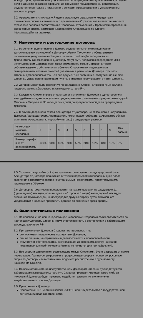И со слались на пункт 7.5, но потом после съезда мы узнаем что нам Яндекс аренда выставила счёт по инициативе арендодателя. Так ещё и ща следующий месяц надо заплатить хотя мы там не живем уже.