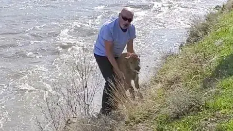 «Пока теленок боролся, мужчина вытолкнул его из реки на проезжую часть», — говорится в пресс-релизе NPS.
