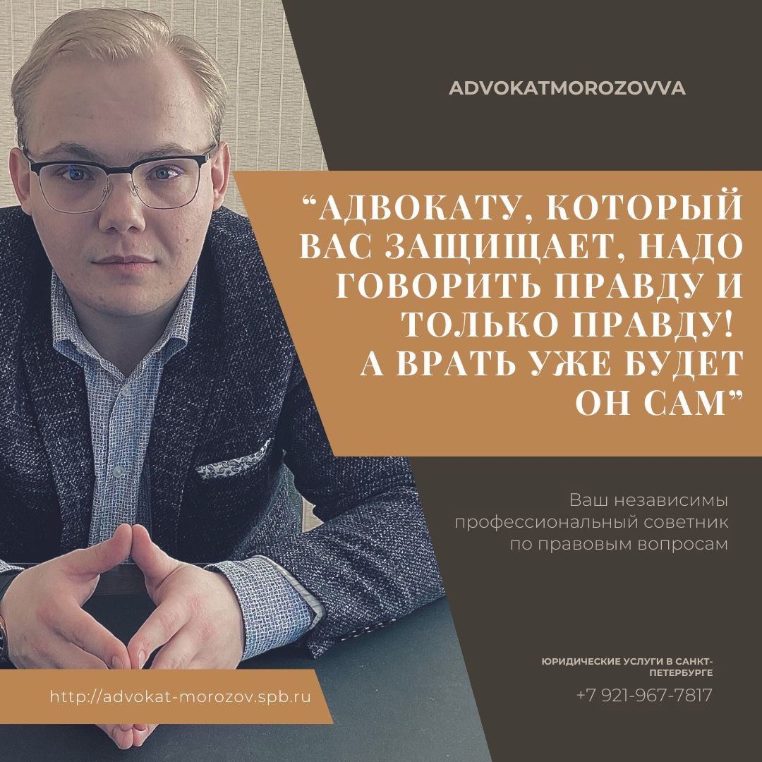 P.S. Запомните два правила адвоката Морозова Вячеслава Алексеевича. Первое «У адвоката есть только одна форма капитала — его репутация» и второе: “Адвокату, который вас защищает, надо говорить правду и только правду! А врать уже будет он сам”.