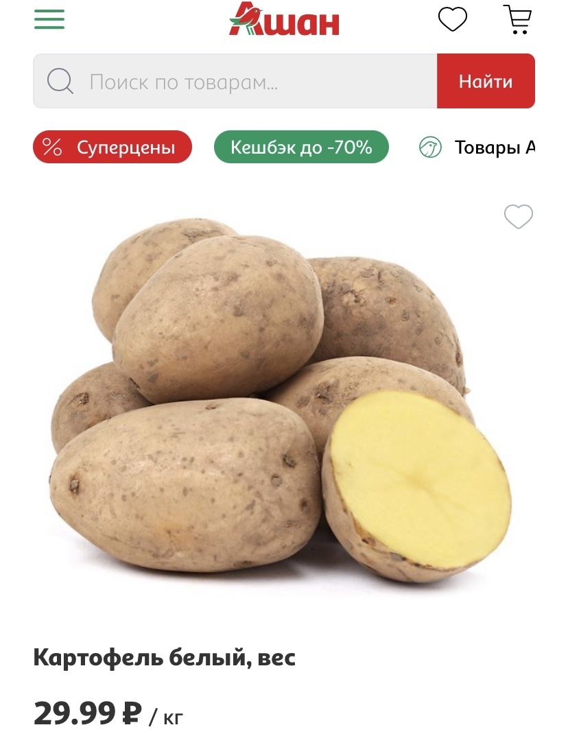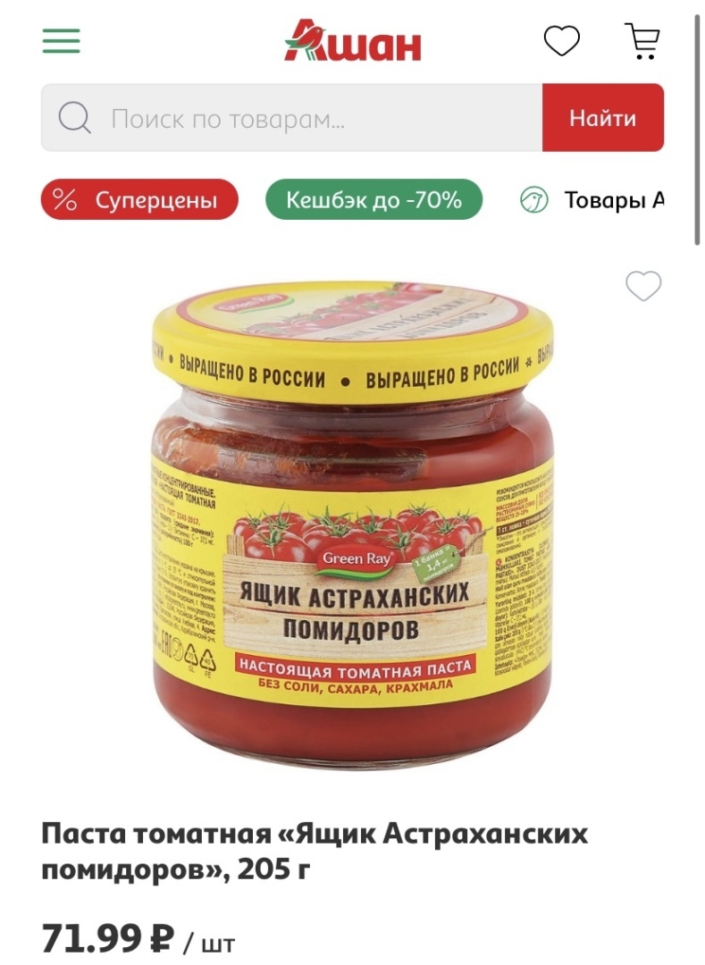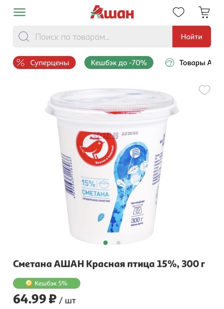 Давайте посмотрим самые дешевые цены на продукты и максимально подберем продукты на указанную сумму. Зашла я в интернет магазин «Ашан».