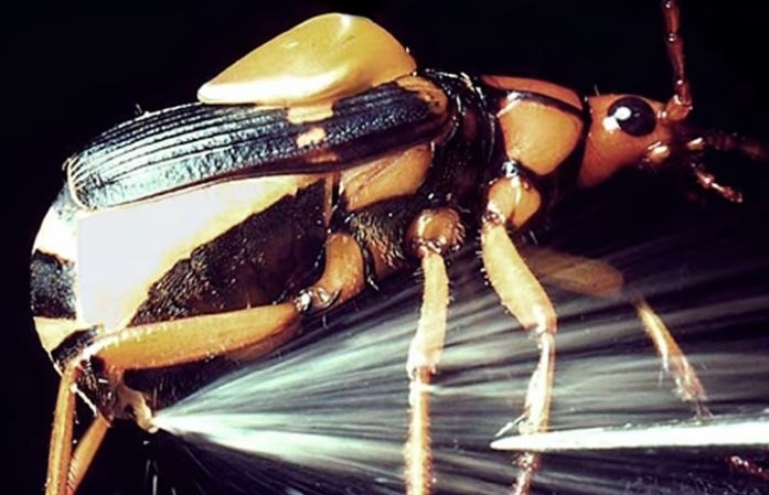 Ученые до сих пор не могут разгадать секрет необычного насекомого - жука-бомбондира, а загадка в его защитном «оружии» которое он впрыскивает из себя во время опасности.