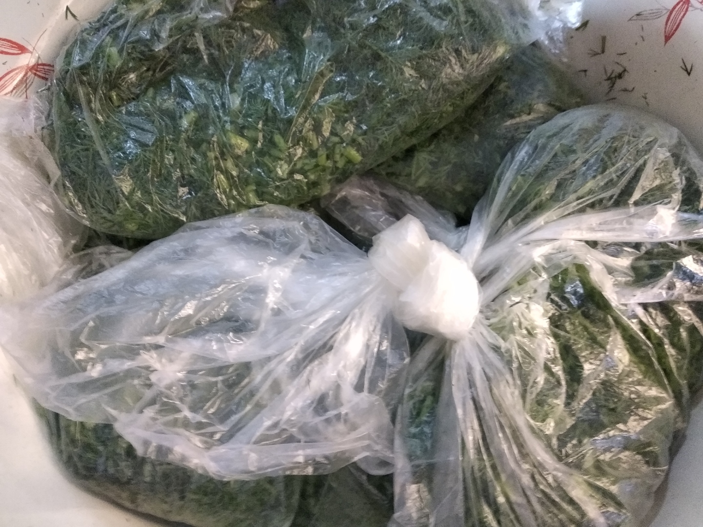-часть укропа складываем в целофановые пакеты и, немного их приплюснув, убираем в морозильную камеру.
