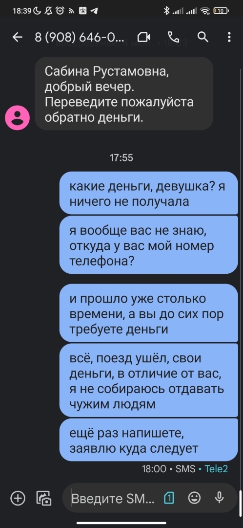 перевела по ошибке на мою банковскую карту 1500 рублей 19 ноября 2021 года. я сразу подумала, что это мошенники, через приложение банка пыталась выяснить, что это за деньги и откуда они свалились. мне ничего толкового не сказали, лишь то, что перевод невозможно отменить без согласия получателя. эта Ольга слёзно просила вернуть деньги, якобы предназначенные дочери, звонила, писала. но я была по-прежнему убеждена, что это мошенники и разумеется, ничего возвращать не стала. надо будет, пускай в суд идёт и через суд эти несчастные 1500 забирает. прошло уже два с лишним года, а эта дамочка оказывается, не успокоилась и писала мне всё это время, когда я в последний раз жёстко сказала в сообщении, мол, проверяйте всё, прежде чем переводить деньги и заблокировала её. в суд она не обращалась, как я понимаю, а я не собираюсь отдавать свои деньги чужому человеку без доказательства того, что это действительно был ошибочный перевод и это действительно не мошенник пытается забрать деньги. в прошлый раз никаких доказательств она не предоставила, на словах пыталась убедить, что она не мошенница, сейчас она уже предлагает показать скрин из личного кабинета, но сейчас подделать подобное в фотошопе можно на раз-два. я опять в жëсткой форме отшила её. как всë-таки поступить?