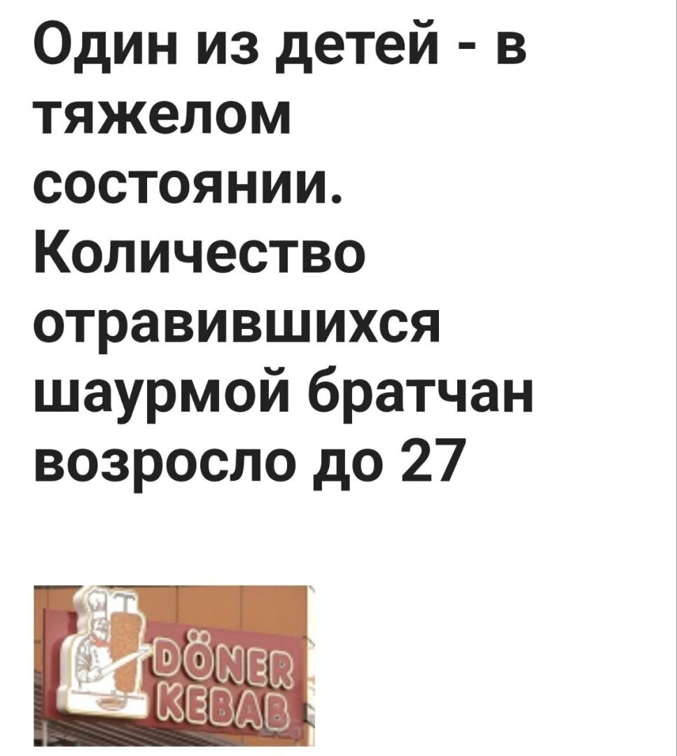 Так же известно, что это же заведение ранее работало под другим названием и юрлицом и так же посетители забегаловки травились шаурмой. Последняя картинка — это скрин новости из 2019 года, когда нынешняя «шаурму хочу» называлась «донер кебаб», но от смены названия меньше людей они травить не стали.