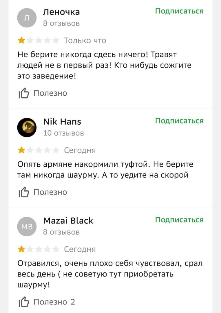 Кому точно принадлежит эта шаурмячная у нас пока точной информации нет, но пользователи интернета пишут, что представителям армянской диаспоры. Причём, судя по отзывам в интернете сигналы в их адрес поступают давно.