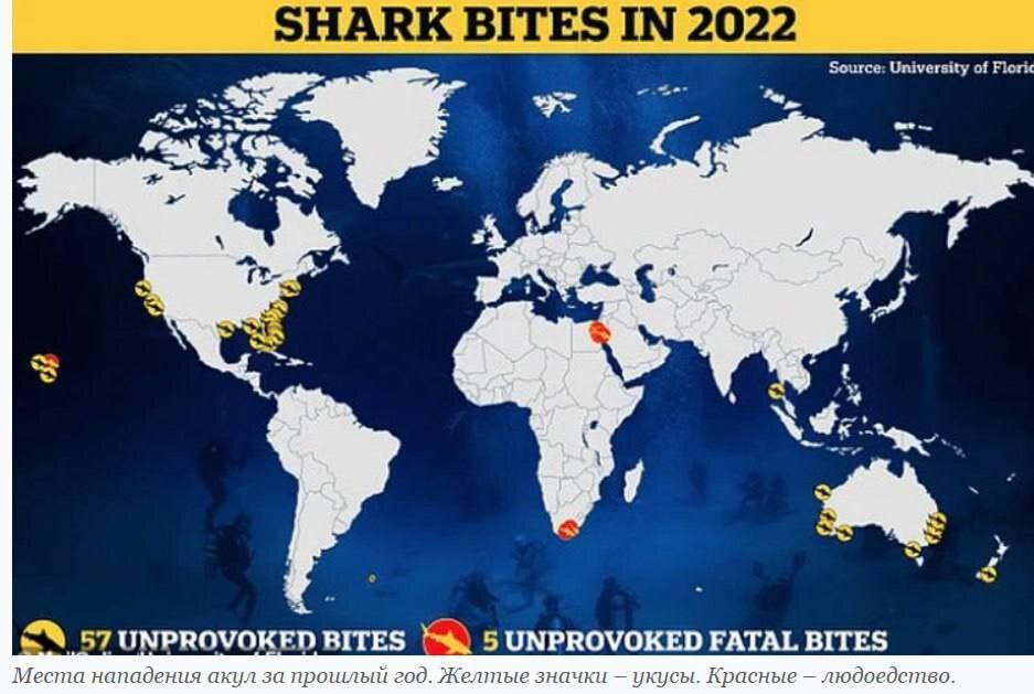 Там существует статистика , каждый год -случается . Причины всех этих нападений так до конца не изучены. Считается, что лишь в одном случае из пяти атака подводной хищницы провоцируется человеком, который слишком близко подплыл к опасной рыбе.