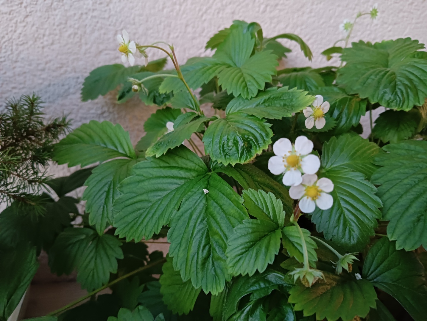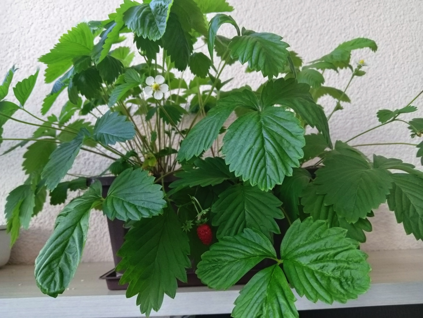 Вырастить рассаду из семян было непросто. Она долго не всходила, а проклюнувшиеся ростки были похожи на ниточки. Это жалкое зрелище не вызывало положительных эмоций, наоборот: земляника мне мешала и занимала место. Втечение июня-июля длилось формирование листиков и кустиков. Затем она зацвела и подарила нам мелкие, кривые красные ягоды, с зелёными узелками на кончиках. Результат не ахти! Но тем не менее, кусты земляники имели насыщенный зелёный цвет листьев и увядать не собирались.