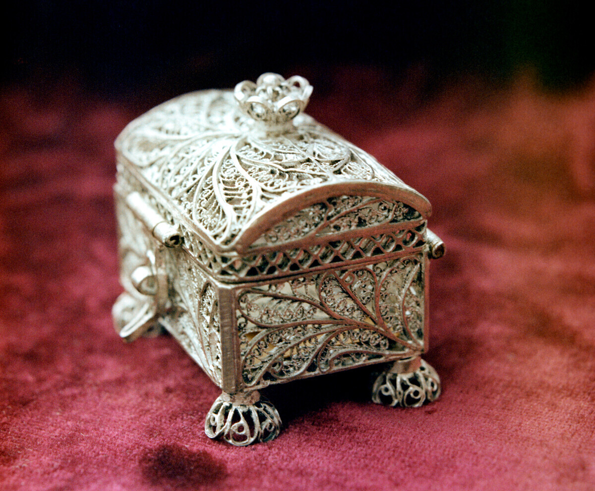 Мастера по серебру - настоящее богатство Великого Устюга. Только представьте: они делали настоящее кружево из ультратонкой серебряной проволоки, украшая им всевозможные предметы. Эта техника до сих пор используется для изготовления сувенирных подносов, бокалов и даже самоваров.