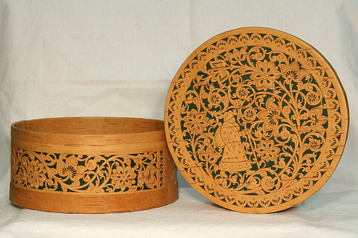 Резьба по кости была очень модной, но очень дорогой. Итак, резчики Великого Устюга придумали недорогой аналог - резьбу по бересте. На Севере многие предметы домашнего обихода изготавливались из бересты, включая футляры, мотки и даже веревки. А в районе Великого Устюга возникло самое известное ремесло по бересте - Шемогодская резьба (по названию региона - Шемогодская).