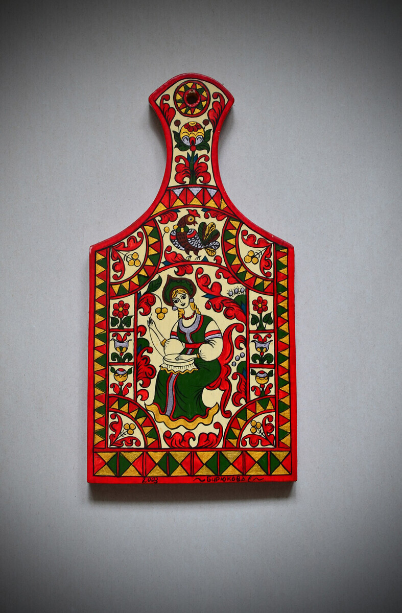 Черные и рыжие лошади украшали различную домашнюю утварь жителей Мезени (Архангельская область). Черную краску получали из древесного угля, красную - из глины, а желтоватый фон стал желтоватым благодаря... зеленым оливкам! Также сохранились разделочные доски, бочки и прядильни. Искусствоведы любят обращать внимание на характер рисунка, часто находя в них языческие мотивы. Художники обычно изображают фигуры лошадей, птиц, оленей, землю и небо. Мезенская роспись как ремесло была впервые зарегистрирована в 19 веке и сохранилась по сей день.