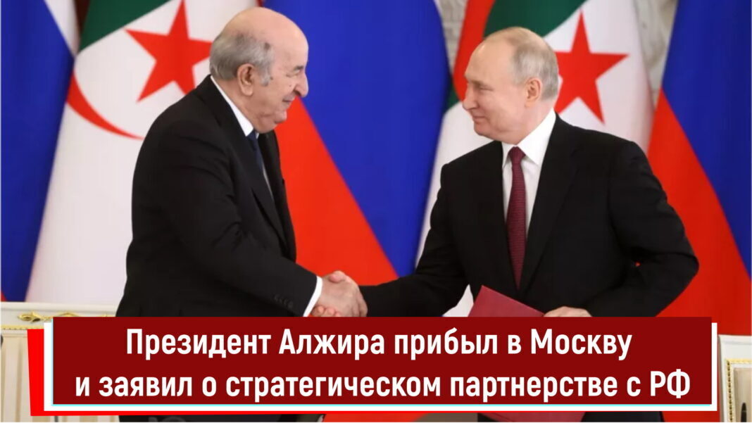 Президент Алжира Абдельмаджид Теббун прибыл в Москву с государственным визитом и заявил о намерении укреплять стратегическое партнерство с Россией.