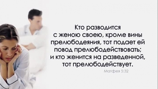 "Каждый, кто разводится со своей женой и женится на другой, совершает грех прелюбодеяния. И тот, кто женится на разведённой, сам повинен в прелюбодеянии». Так сказал Христос.