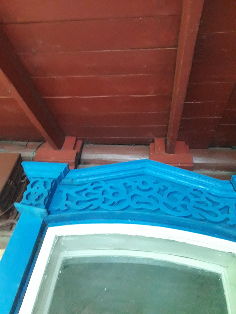 Не пытайтесь в лиственницу бить гвозди, стопятидесятки гнутся как спички, от молотка летят искры и осколки. У меня, конечно все получилось, но большого удовольствия не доставило. Это помещичья усадьба 1908 года. Навес над крыльцом-танцплощадкой. Окно родное, реставрированное, делал сам. "Кренделябры" были утрачены, скопировал с другого окна.