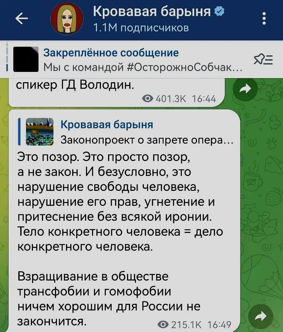 - Но, в большой стране не без урода и Ксения Собчак на своём телеграм-канале с очень говорящим названием «Кровавая барыня» издала вопль угнетённой либеральной души, от волнения перепутав даже кнопки клавиатуры со знаками препинания.