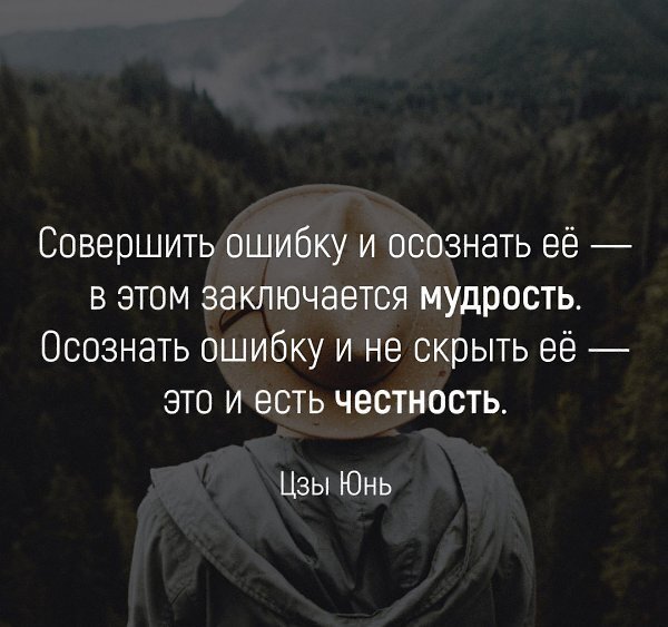 Не ошибается только тот, кто ничего не делает. Главное, научиться делать выводы из этих ошибок, чтобы не повторять их снова и ценить их, как приобретённый опыт.