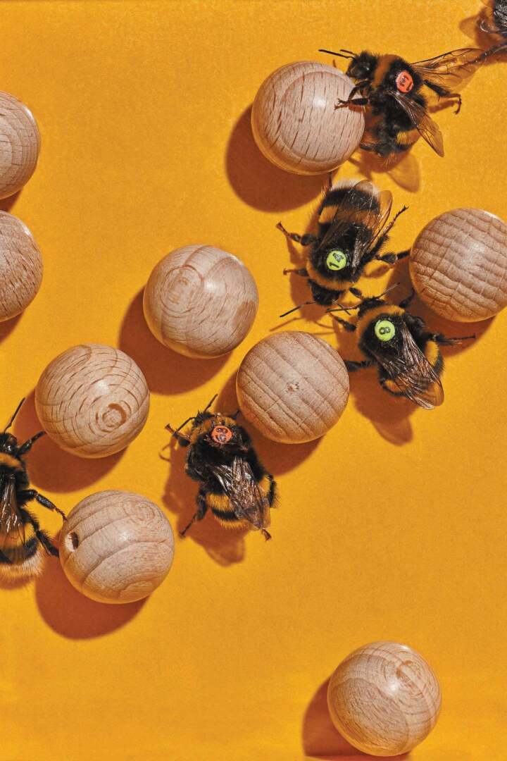 Другие работы показывают, что пчелы могут испытывать не только оптимизм, но и радость. Несколько лет назад мы обучили шмелей катать крошечные шарики к воротам, чтобы получить награду в виде нектара — форма манипулирования объектом, эквивалентная использованию человеком монеты в торговом автомате. В ходе этих экспериментов заметили, что некоторые пчелы катали шарики, даже когда не предлагалось никакого вознаграждения сахаром. Это может быть формой игрового поведения.