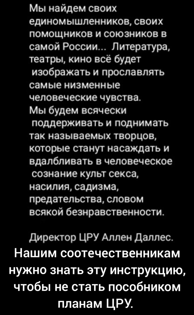 После публикации в сообществе "За речь без мата и песню Русскую" (ВКонтакте) о том, что среди нас есть люди, которые поклоняются дьяволу(злу) и есть те, кто их защищает, и что эти люди любят ходить в кинотеатры на фильмы ужасов, в сообщество пришло сообщение, в котором одна женщина делает вывод, что если в настоящее время в кинотеатрах нашей страны шли и продолжают идти фильмы ужасов, замешанные на насилиии, крови,ведьмах, мертвецах, то значит кто-то сознательно и целенаправленно такие показы фильмов ужасов организовывает. А значит поклонение дьяволу происходит на самом высоком уровне в Министерстве культуры РФ. Сообщество "За речь без мата и песню Русскую" считает, что мысль этой русской женщины логична.